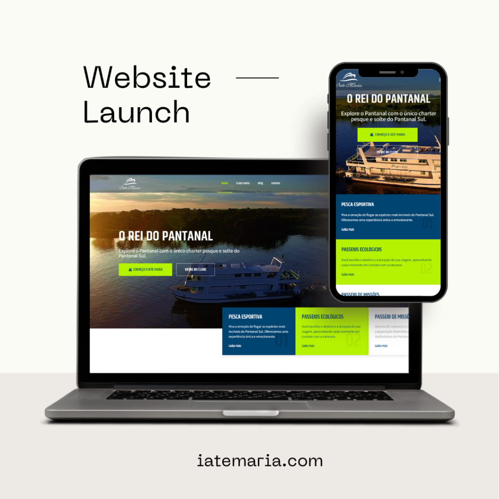 O site do Iate Maria foi redesenhado para destacar a experiência única de explorar o Pantanal Sul a bordo do único charter pesque e solte da região. Com um visual moderno e imersivo, a plataforma proporciona uma navegação intuitiva e informações detalhadas sobre os serviços oferecidos.